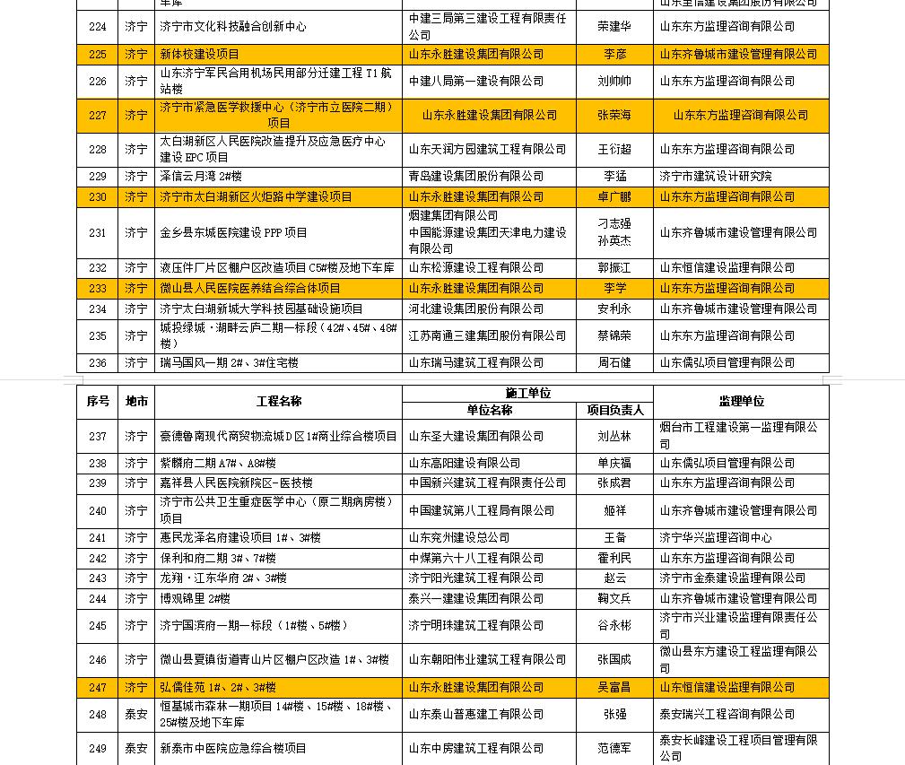 熱烈祝賀山東永勝建設(shè)集團榮獲2021年濟寧市安全生產(chǎn)先進單位,其中新體校、市立醫(yī)院二期、火炬路中學(xué)、微山縣人民醫(yī)院、弘儒佳苑等5個在建項目,榮獲2021年度省級安全文明標(biāo)準(zhǔn)化工地。
